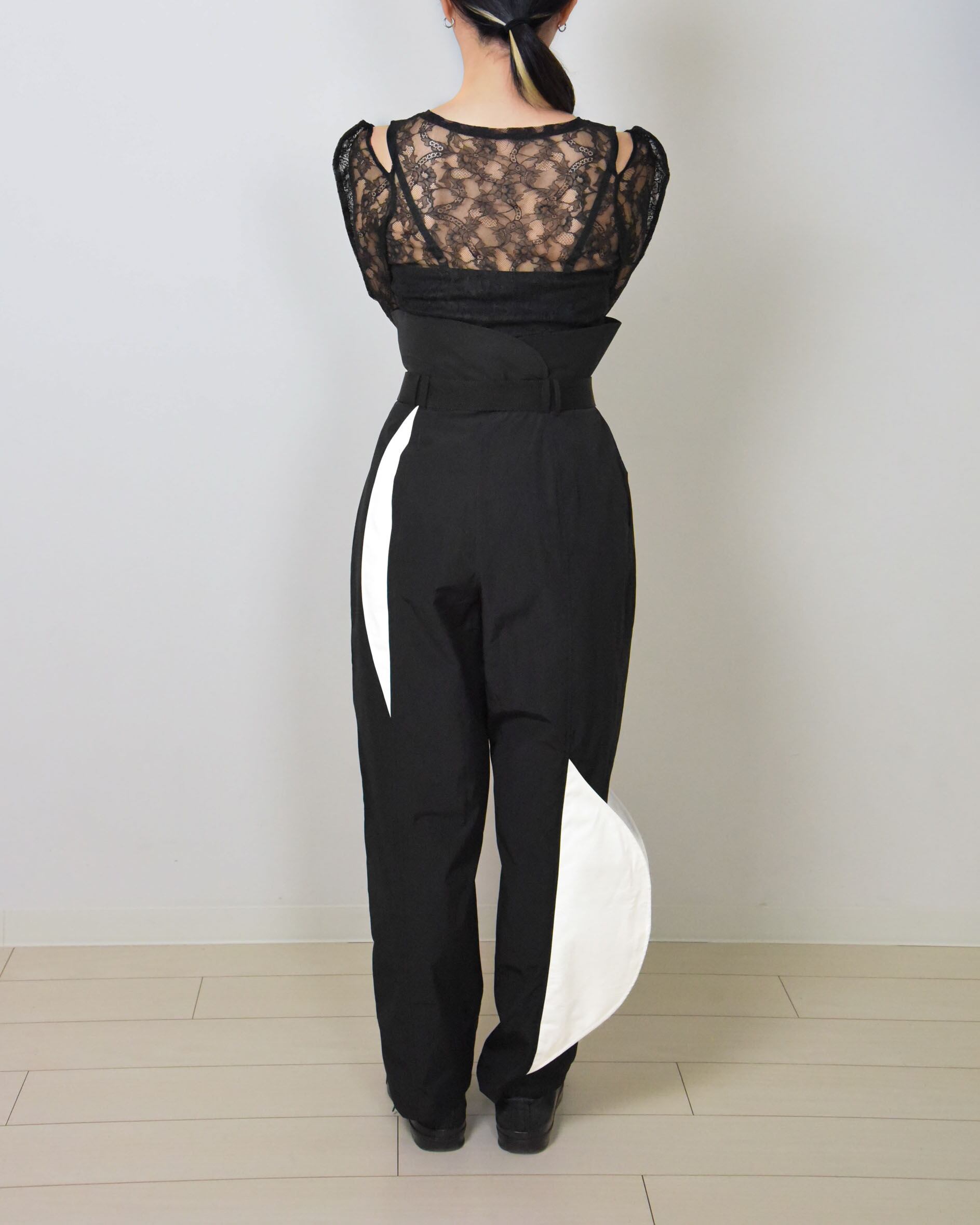 肩のスリットや袖口のフレア、レース素材が女性らしいトップス。ウエスト紐取り外し可。tulle ribbon topsやeco leather vestとのレイヤードが相性抜群です。