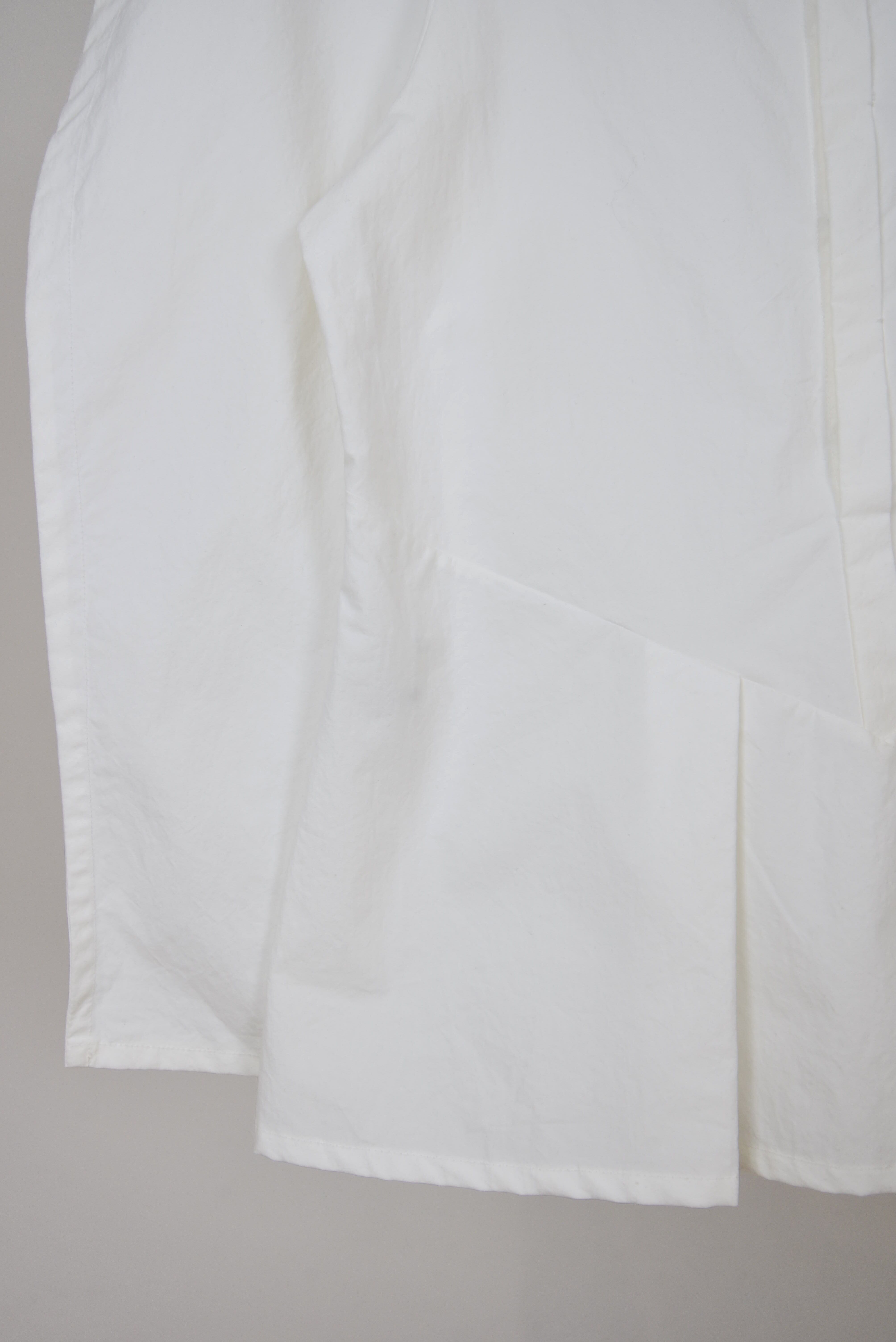 立体的な袖と肩にカッティングデザインを施し たブラウス。ワッシャー素材の生地を使用すること でアイロン不要のイージーケアアイテム。eco leather vestとのレイヤードがおすすめです。